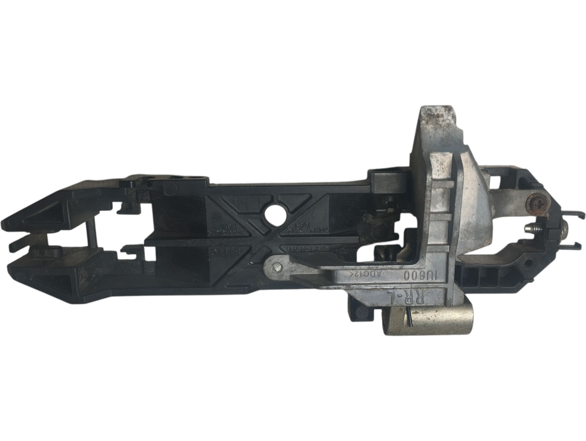 Suporte da maçaneta externa traseira do lado esquerdo do Nissan Livina. Peça original, ideal para substituição em caso de quebra, desgaste ou travamento do suporte da maçaneta. Produto em excelente estado, com procedência garantida.
